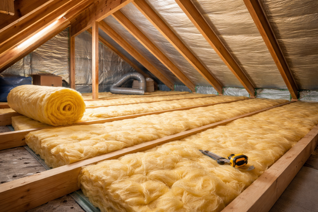 Nous réalisons l’isolation des combles perdus par soufflage de laine de verre, une solution performante pour réduire les déperditions de chaleur par la toiture. La laine de verre est projetée directement au sol, garantissant une isolation homogène et efficace.